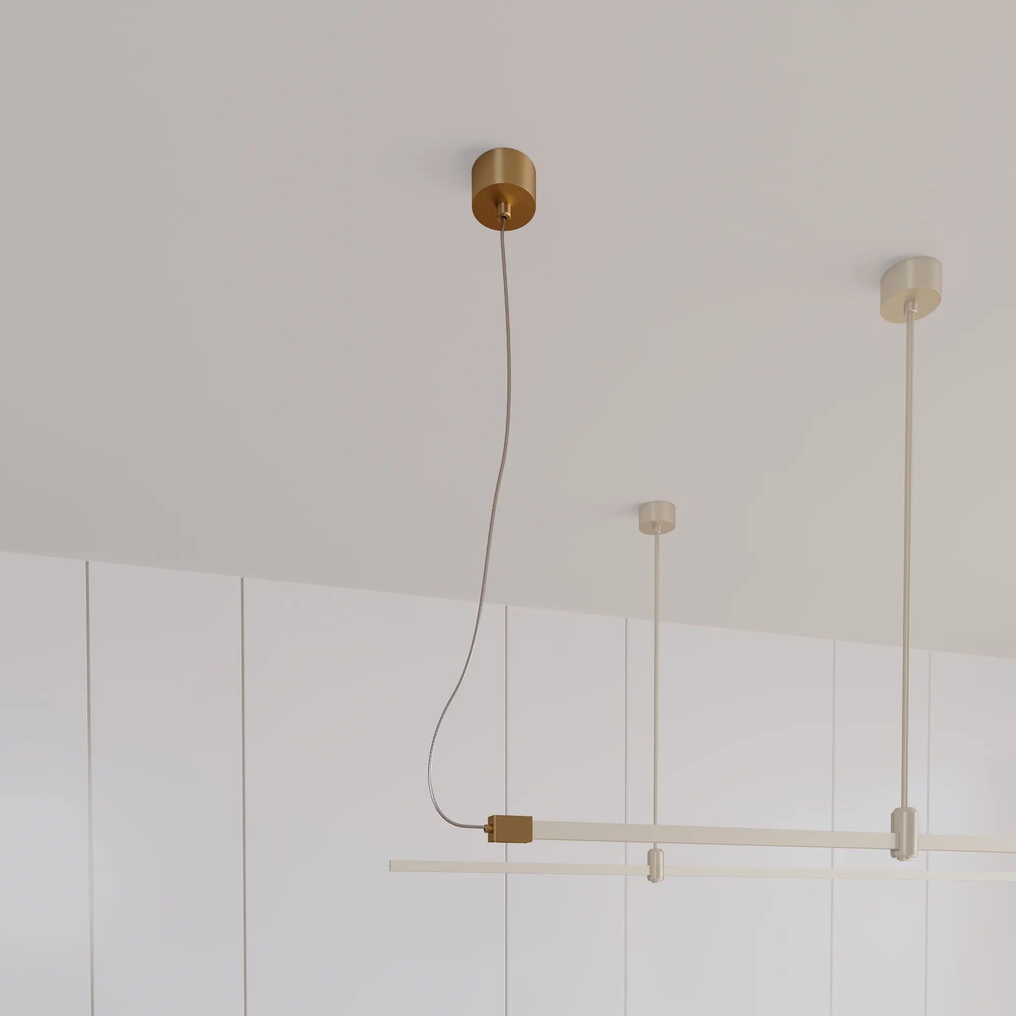 Потолочная чаша с боковым подводом питания треков системы APRIORI. Напряжение питания DC48V. Размер Диаметр чаши 80 мм, внутренний диаметр чаши 74мм, внешняя высота чаши 38 мм, глубина чаши до монтажного отверстия 25 мм, общая высота подвеса 1500 мм. Материал алюминий, цвет светлое золото.