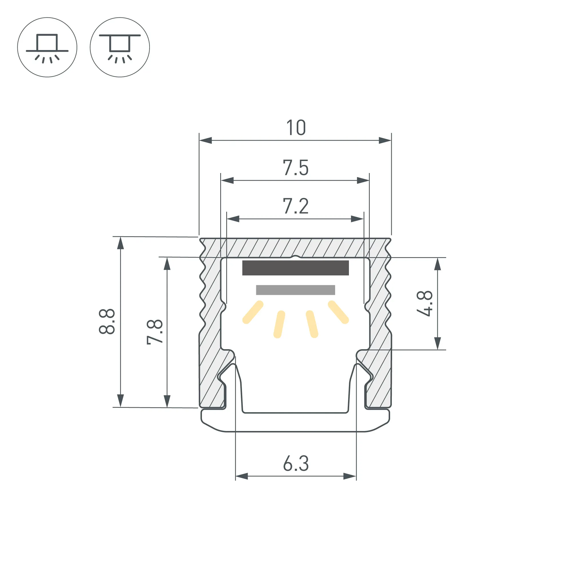 Алюминиевый анодированный микропрофиль для светодиодных лент и линеек. В зависимости от выбранного экрана профиль можно как установить на поверхность, так и встроить в неё. Габаритные размеры (L×W×H): 2000x10x8,8 мм. Ширина площадки для ленты 7,5 мм. Экраны, заглушки и другие аксессуары приобретаются отдельно. Цена за 1 метр.