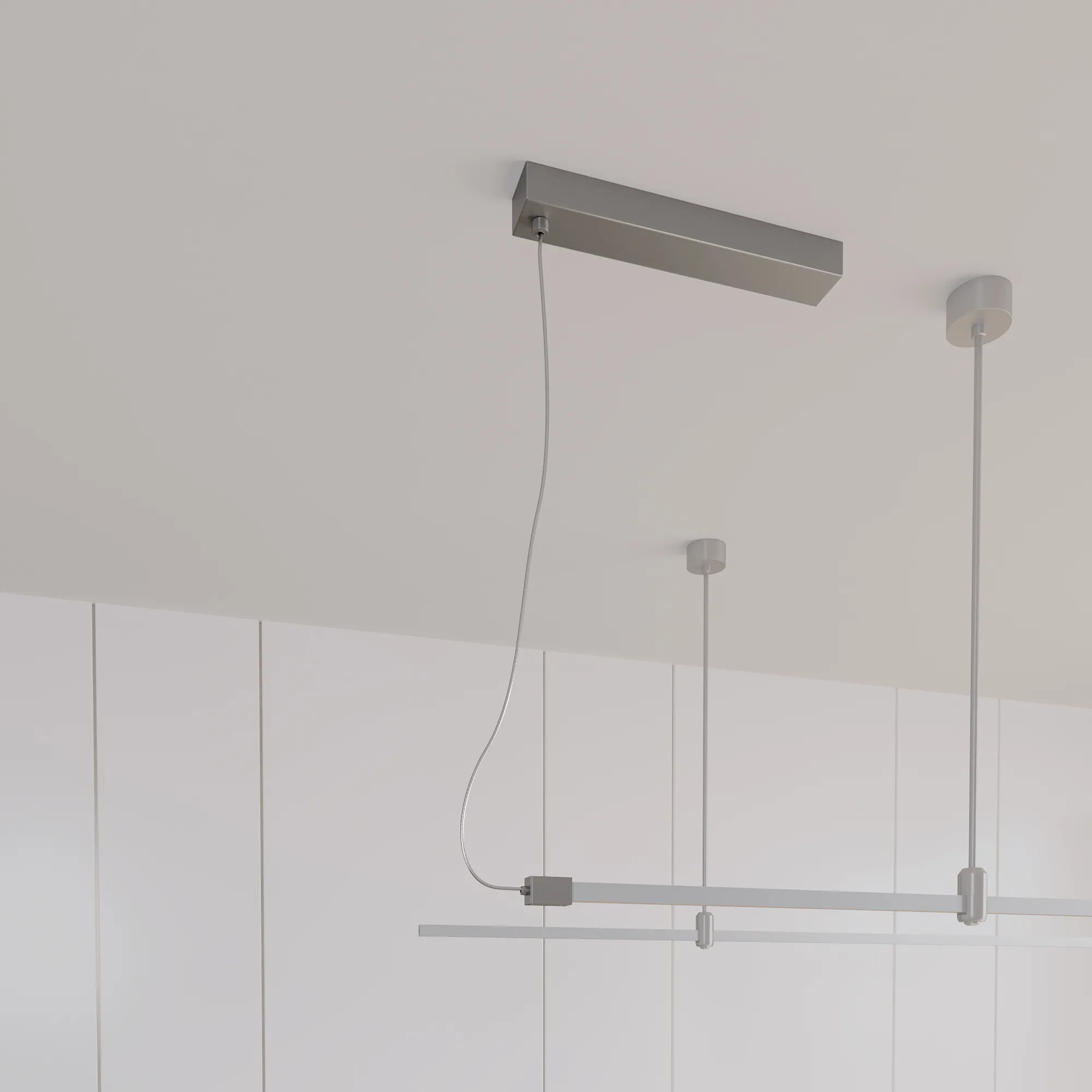 Потолочный короб для источника питания системы APRIORI с боковым подводом питания. Напряжение питания DC48V. Размер ДxШxВ: 400x60x40мм. Внутренний размер под БП ДxШxВ: 350*50*30 мм. Длина кабеля 5000 мм. Материал алюминий, цвет титан. Источник питания приобретается отдельно.