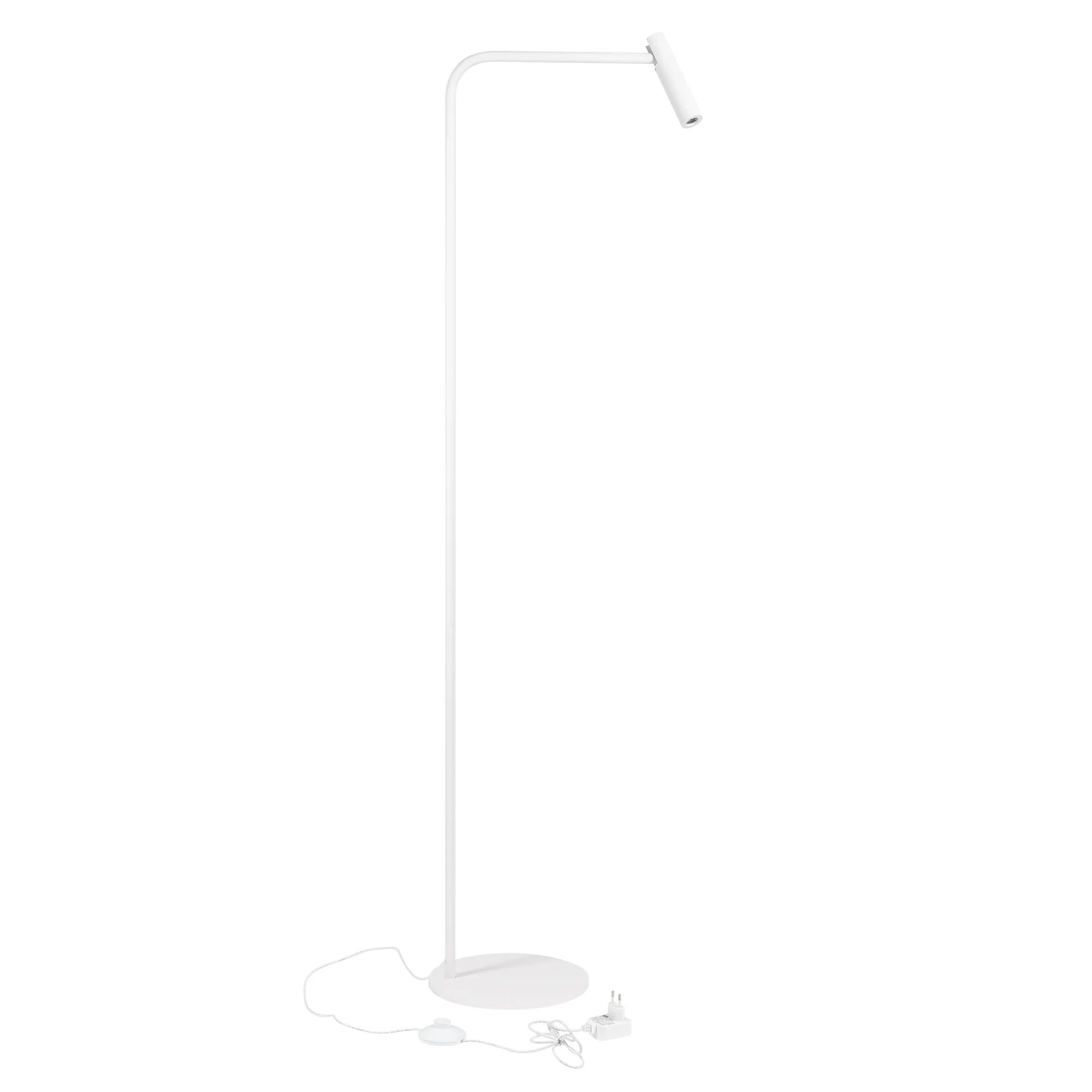 Декоративный напольный светильник. Мощность 3 Вт, св. поток 180 лм, 60 лм/Вт, теплый 3000К, CRI>90, угол 20°, напряжение питания 230 В. Белый корпус из алюминия (основание, ножка, светоизлучатель в форме шара), степень защиты IP20. Размер основания Ø250×12 мм, размер ножки Ø16×1440х250 мм, размер светоизлучателя Ø35×150 мм. Длина провода 193 мм, питание от сети 220-240V. Пульсация <1%.