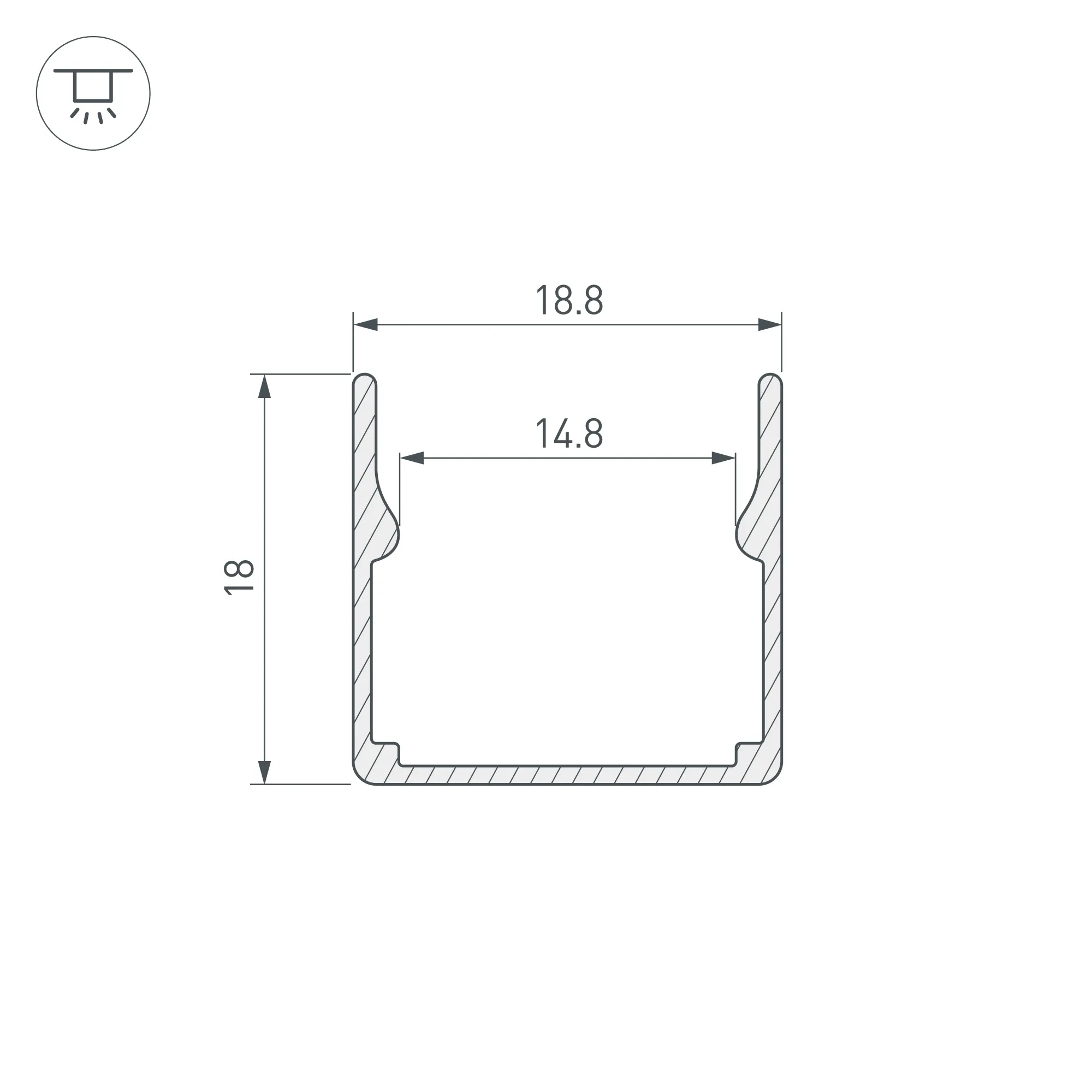 Профиль из анодированного алюминия для силиконового профиля WPH-FLEX-1616. Габаритные размеры (L×W×H): 1000х18,8х18 мм. Цена за 1 метр.