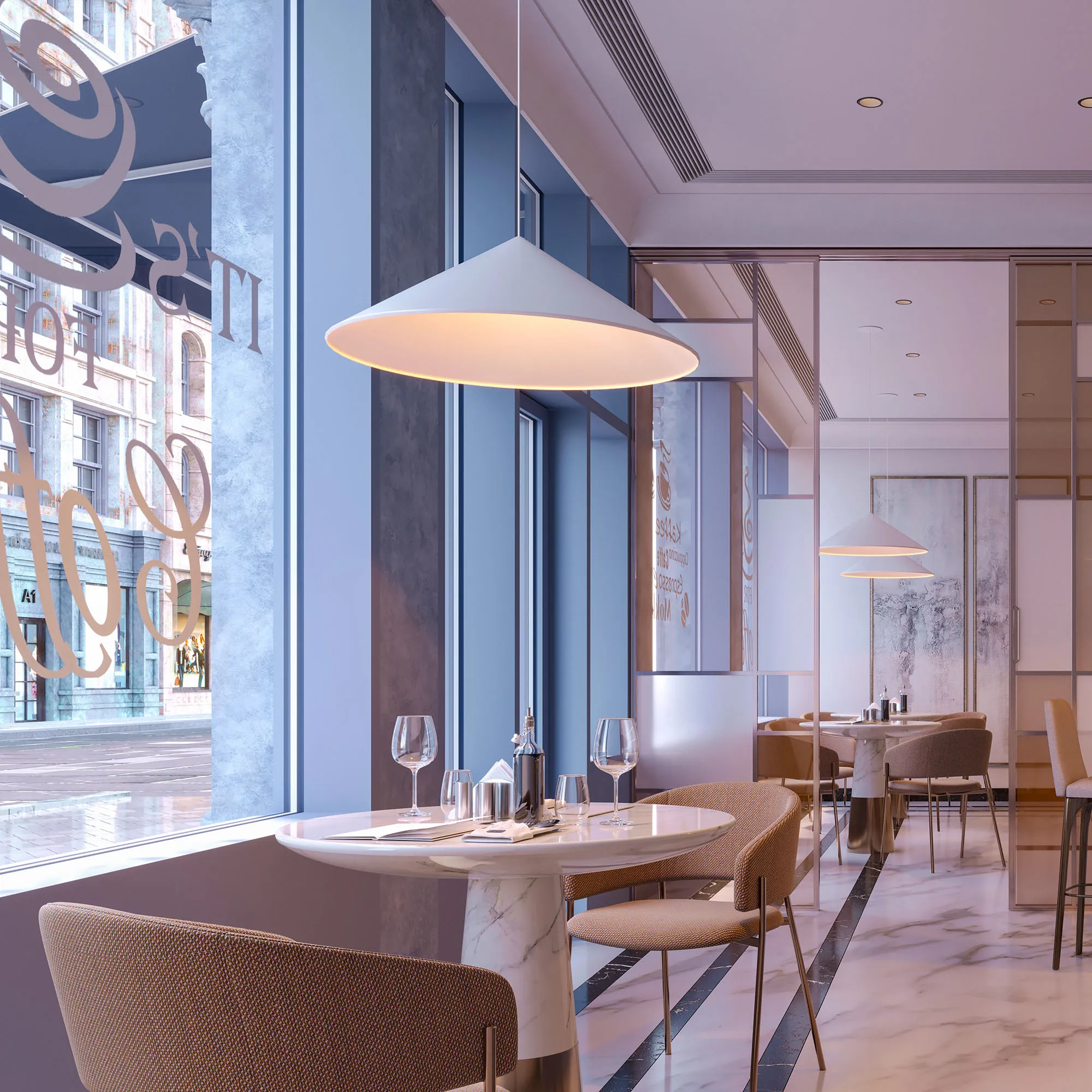 Подвесной светильник. Мощность 14 Вт, св. поток 1200 лм, 90 лм/Вт, теплый 3000 K, CRI>92, угол 36°, напряжение питания 230 В. Белый корпус из алюминия в форме конуса с белой внутренней поверхностью, линза-рассеиватель из PMMA, степень защиты IP20. Размер: диаметр 750 мм, высота 230 мм. Монтаж подвесной, длина подвеса 2000 мм, регулируемая. В комплекте 2 вида чаш. Габариты встраиваемой чаши: Ø 80x23 мм. Габариты накладной чаши Ø140x55 мм. Драйвер 27-42 В, 350 мА, пульсация <1%. Управление по TRIAC.