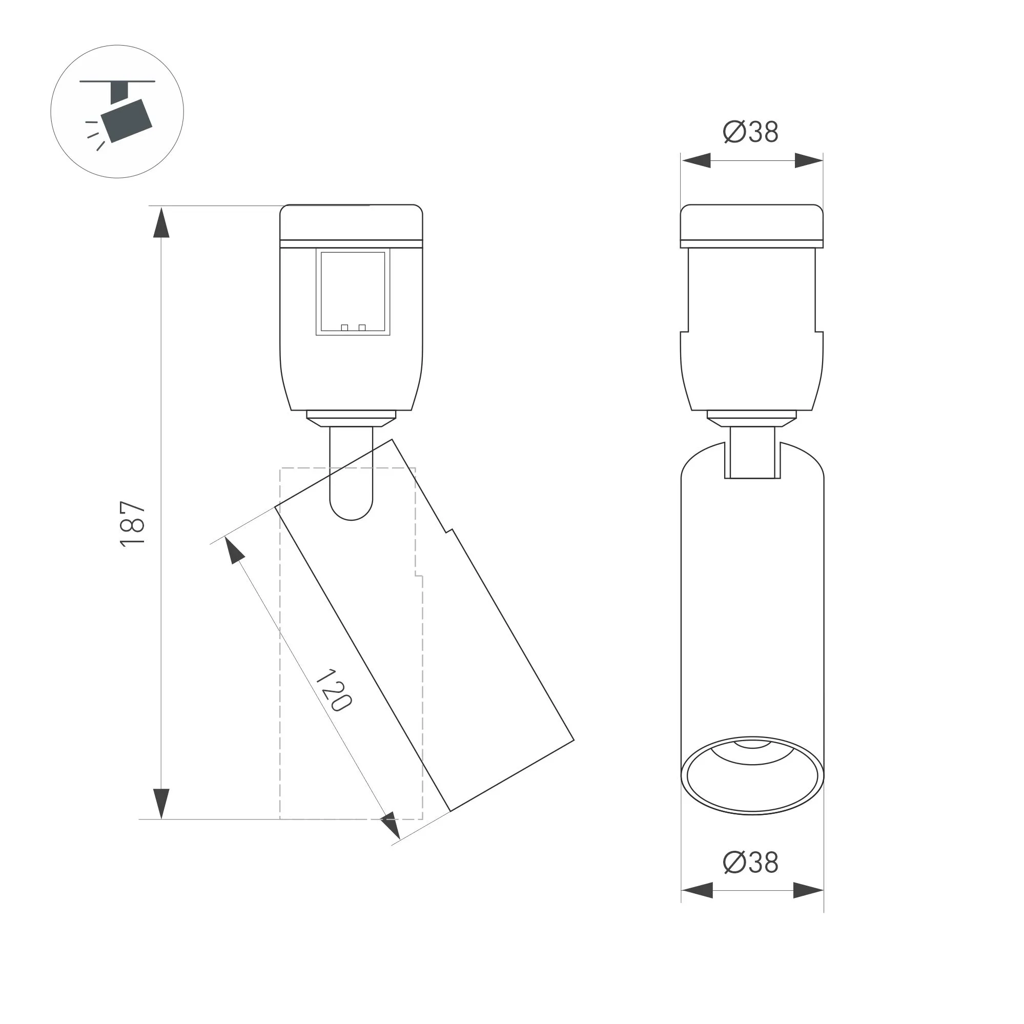 Светильник поворотный для треков APRIORI шириной 17 мм. Мощность 8 Вт, св. поток 580 лм, 73 лм/Вт, теплый 3000 K, CRI>92, угол 36°, напряжение питания 48 В. Чёрный фигурный корпус из алюминия, гальванизированного в цвет титан, степень защиты IP20. Размер: Ø38 x 187 мм. Монтаж на трек APRIORI 17 мм. Пульсация <1%. Возможно диммирование по ШИМ (PWM) или не адресное управление при использовании диммируемого драйвера Dali, 0-10V, TRIAC.