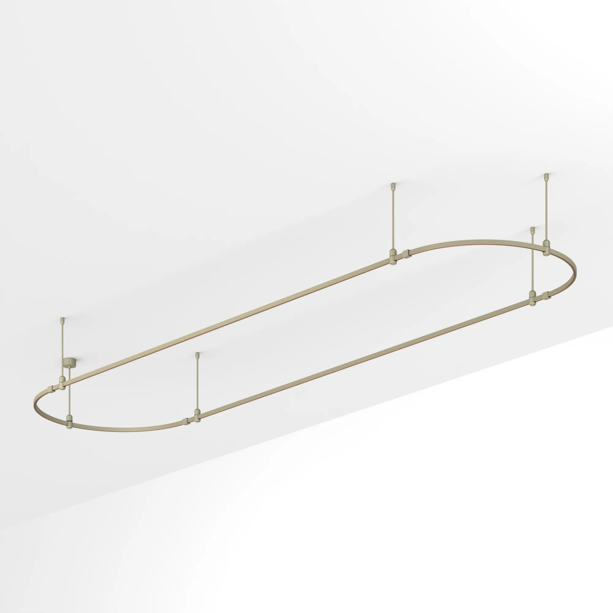 Подвесная конструкция APRIORI, форма овал. В комплекте треки с аксессуарами и жесткими подвесами длиной 400мм. DC48V. Материал алюминий, цвет серо-оливковый. Размер ДxШxВ: 4000x1000x22мм. Светильники и источники питания приобретаются отдельно.