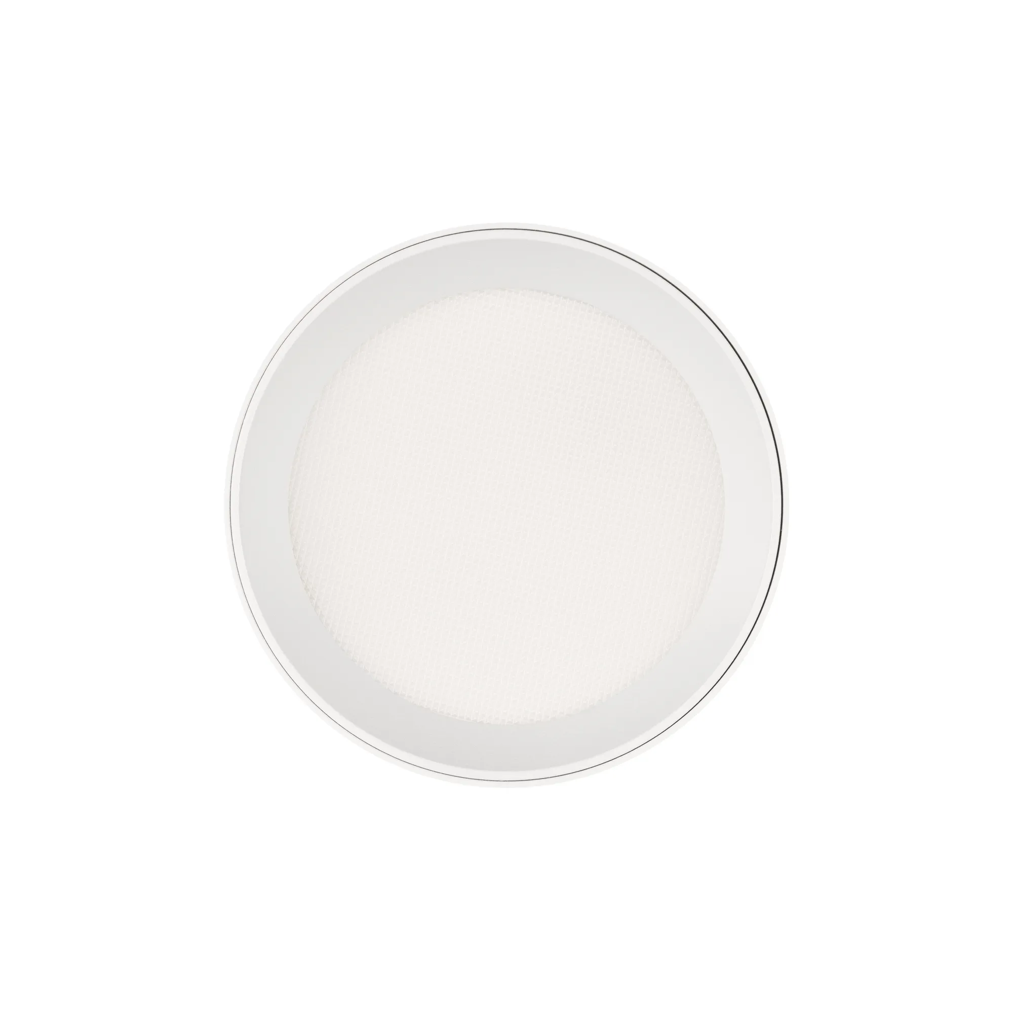 Накладной светильник. Мощность 8 Вт, св. поток 620-640 лм, 80-85 лм/Вт, теплый 2700 K, теплый 3300K, дневной 4000K (переключается), CRI>90, угол 80°, напряжение питания 230 В. Белый круглый корпус из алюминия, экран PC, степень защиты IP54. Размер: диаметр 90 мм, высота 75 мм. Монтаж накладной. Драйвер 27-43 В, 200 мА, пульсация < 2 %.