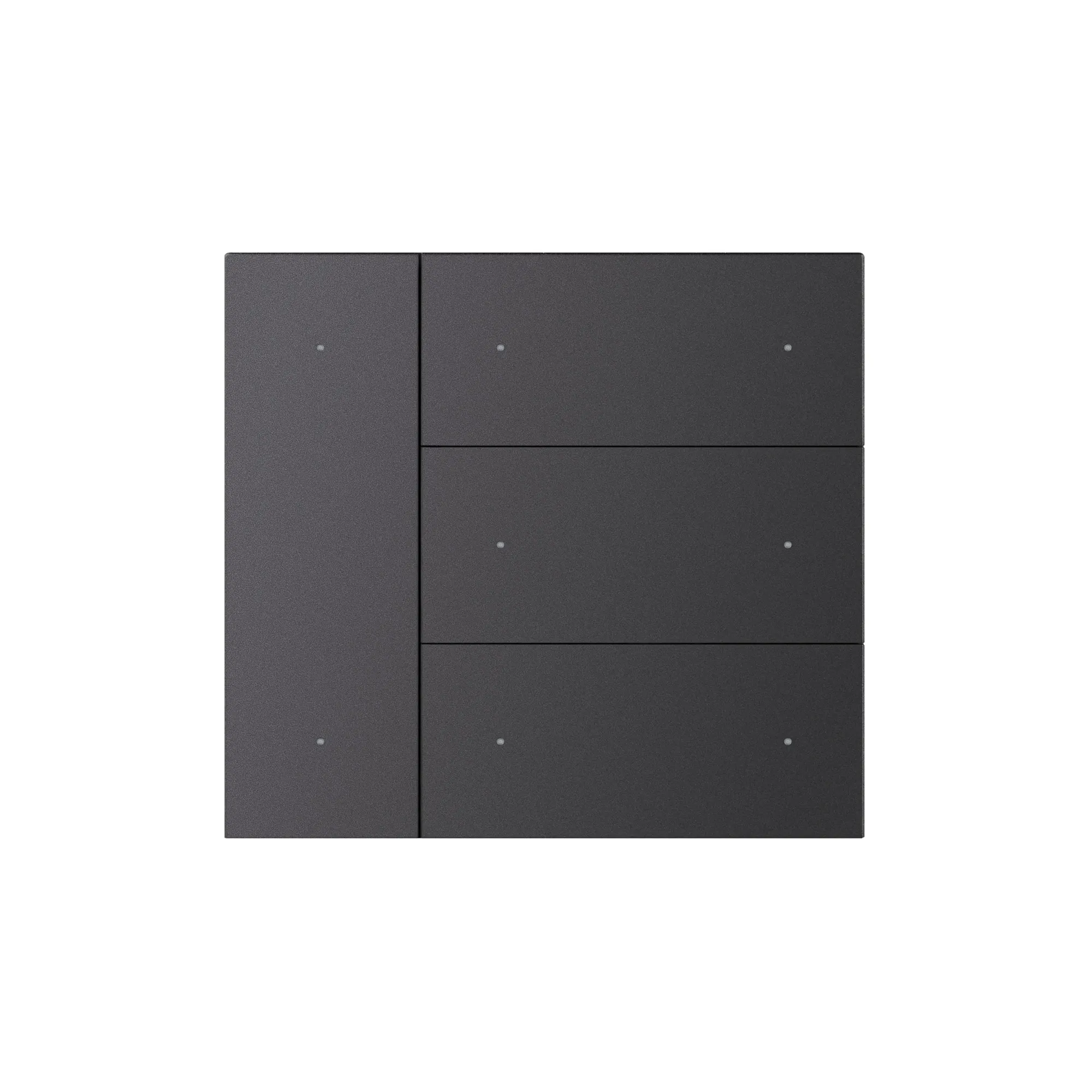 Накладка панели с клавишами для механизма универсальной многофункциональной встраиваемой настенной панели для систем KNX. 4 клавиши. Материал - алюминий. Светодиодная индикация. Цвет - темно-серый. Габариты 86x80x3 мм.