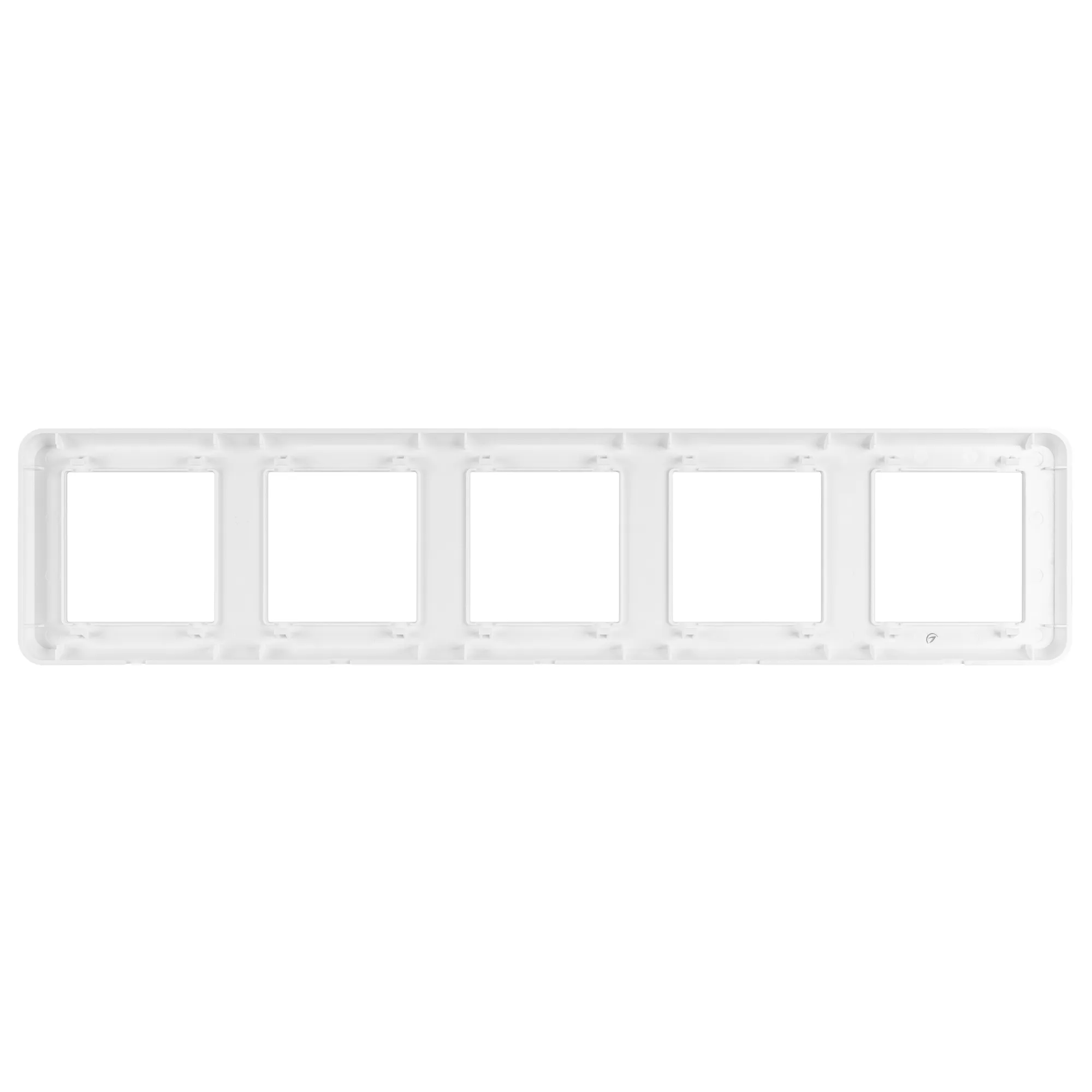 Рамка пластиковая на 5 постов, под встраиваемый механизм (квадрат). Цвет - белый. Ориентации монтажа - горизонтальная.