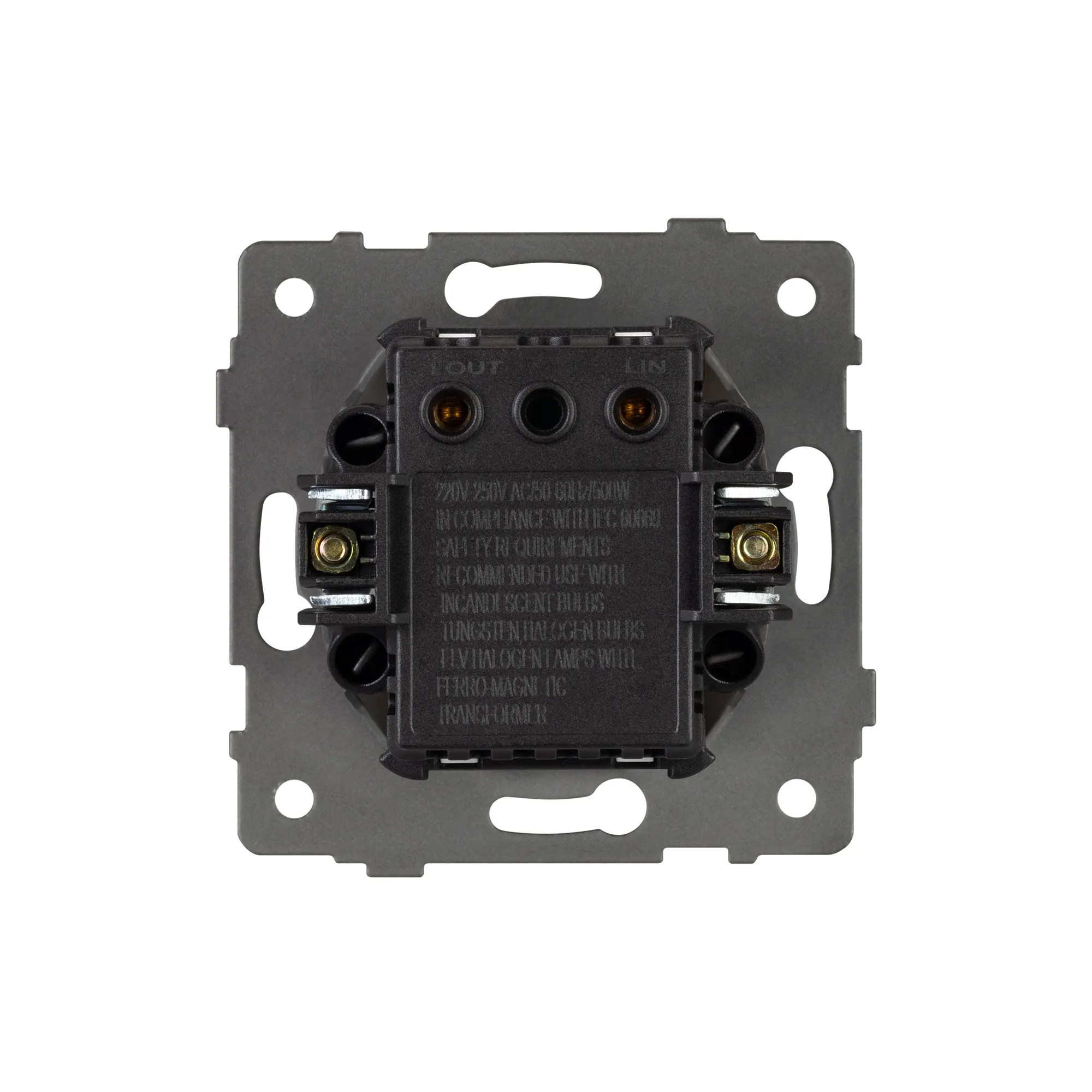 Механизм регулировки света на 1 пост. Цвет - золотой. Без фронтальной рамки. Уровень пылевлагозащиты IP20. Механизм устанавливается в стандартный круглый подрозетник. Максимальная нагрузка 500 Вт только для ламп накаливания и галогенных, 150 Вт только для энергосберегающих и светодиодных ламп. Габаритные размеры: длина 71 мм, ширина 71 мм, высота 52 мм. Гарантийный срок 10 лет.