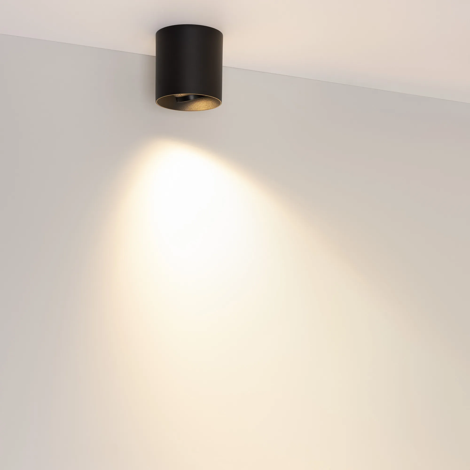 Накладной интерьерный светильник c регулируемым углом излучения. Мощность 10 Вт, св. поток 820-850 лм, 82 лм/Вт, теплый 3000K, CRI>90, угол 20°-45°, напряжение питания 230 В. Черный круглый корпус, угол поворота светового модуля 60° (30°+30°), степень защиты IP20. Размер: диаметр 95 мм, высота 98 мм. Монтаж накладной. Драйвер встроенный 27-48 В, 250 мА, пульсация <0,3 %.