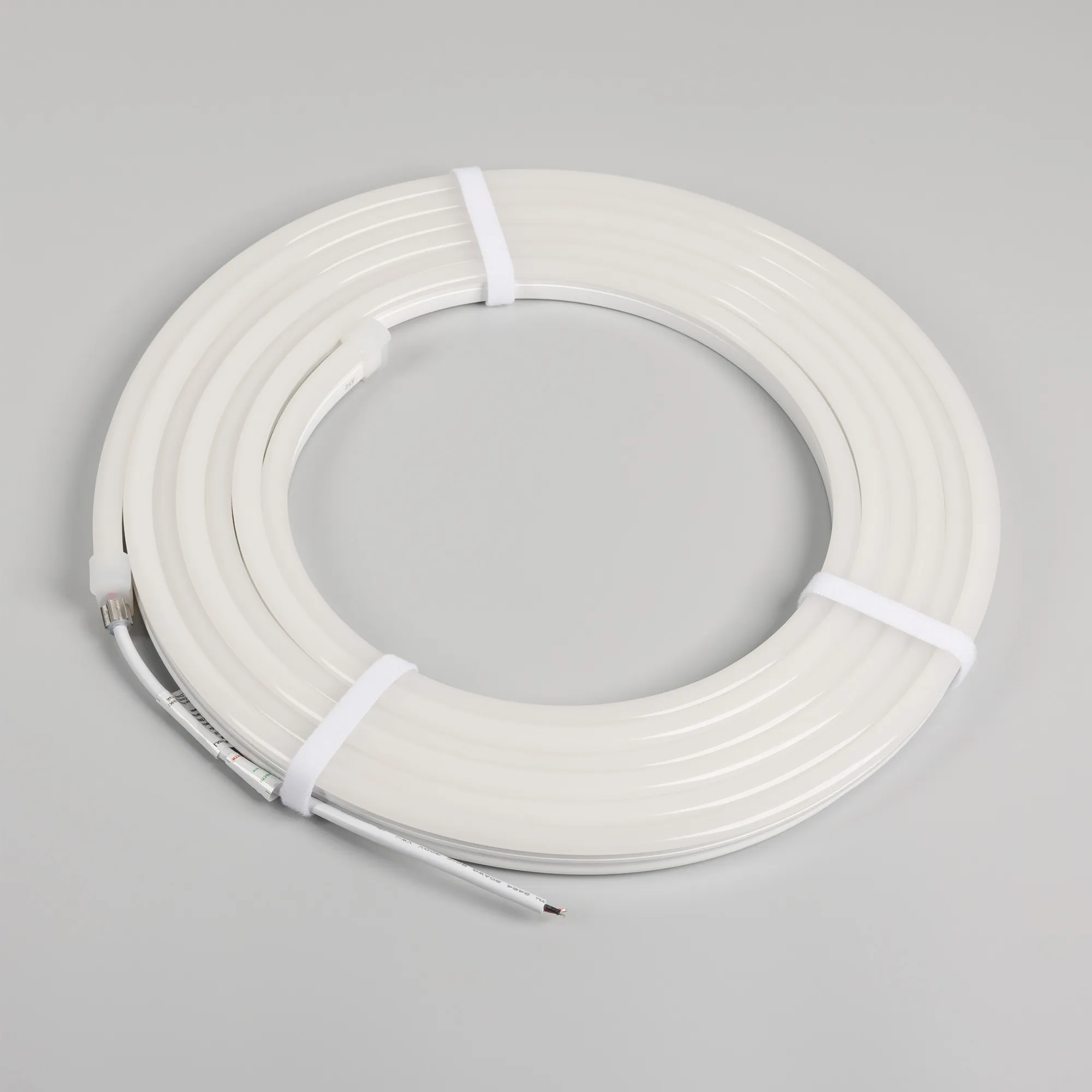 Гибкая герметичная лента (неон серии HALO), сечение 10×17 мм. Светодиоды SMD 2835 160 шт/м. Цвет свечения ТЁПЛЫЙ (3000 К), индекс цветопередачи CRI>80, световой поток 500 лм/м, угол излучения 140°. Мощность 10 Вт/м, питание 24 В. Класс пылевлагозащиты IP67. Размеры 5000×10×17 мм. Мин. отрезок 50 мм. Горизонтальный изгиб SIDE, минимальный радиус изгиба 75 мм. Вывод кабеля с одной стороны. Катушка 5 м. Цена за 1 м. Гарантия 3 года.