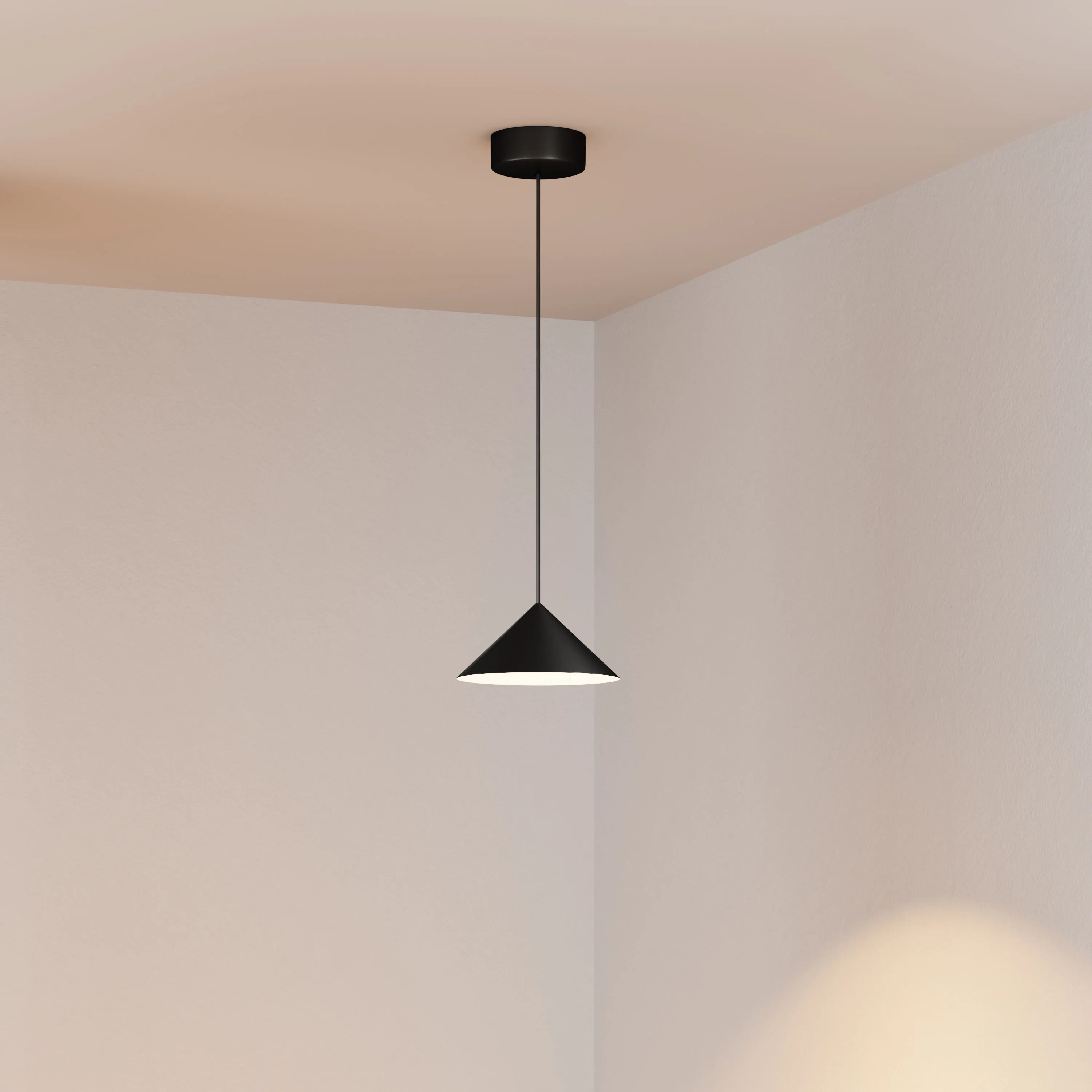 Подвесной светильник. Мощность 10 Вт, св. поток 650 лм, 65 лм/Вт, теплый 2700 K, CRI>94, угол 36°, напряжение питания 230 В. Черный корпус из алюминия в форме конуса с белой внутренней поверхностью, линза-рассеиватель из PMMA, степень защиты IP20. Размер: диаметр 240 мм, высота 110 мм. Монтаж подвесной, длина подвеса 2000 мм, регулируемая. В комплекте две чаши. Габариты чаши (встроенной) Ø80 х 41 мм, врезное отверстие Ø55 мм, габариты чаши (накладной) Ø110 х 25 мм. Драйвер 2,8-12В, 520 мА, пульсация <1%.Управление по TRIAC.