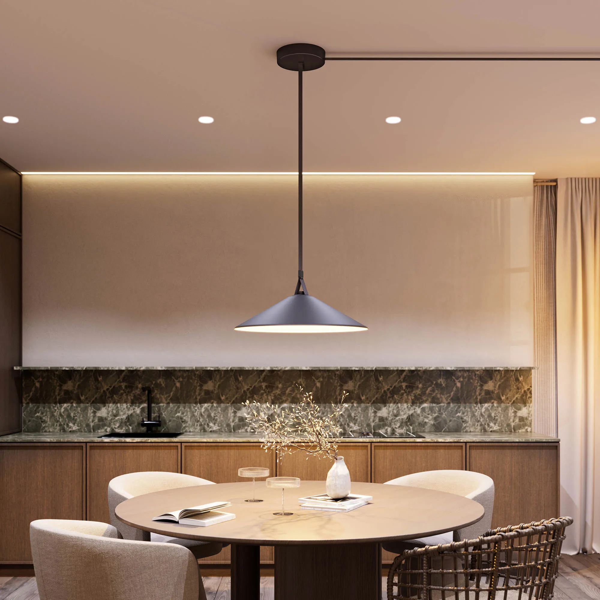 Светильник ART-INBELT-WOK-R430. Мощность 15 Вт, св. поток 710-810 лм, 47 лм/Вт, изменяемая цветовая температура 2700-6500 К, CRI>92, угол 110°, напряжение питания 48 В. Cтепень защиты IP20. Размер: Ø430 x 110 мм. Монтаж на токопроводящий ремень INBELT. Цвет корпуса черный. Протокол управления DALI.