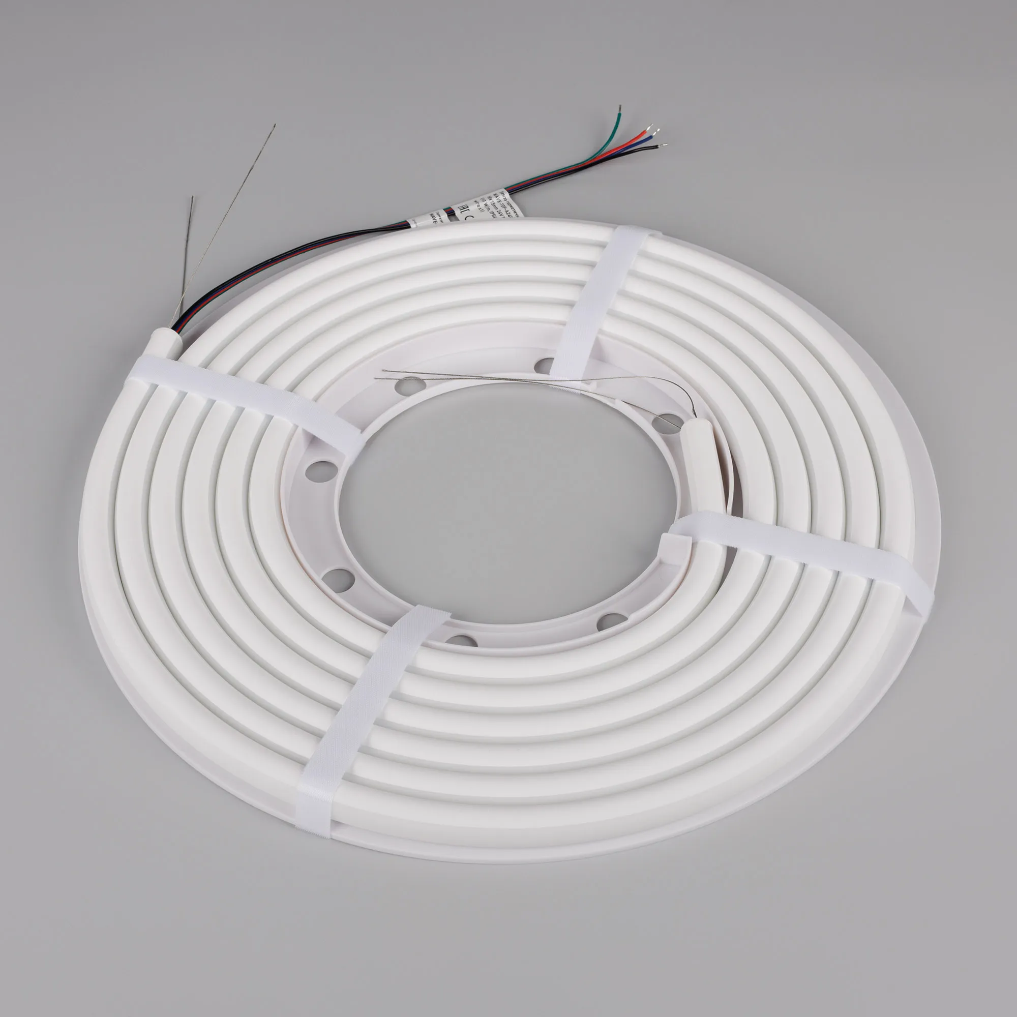 Гибкая герметичная лента (неон серии WAVE), сечение 18×15 мм с тросом-натяжителем. Светодиоды SMD2835 240 шт/м. Цвет свечения RGB, угол излучения 360°. Мощность 10 Вт/м, питание 24 В. Класс пылевлагозащиты IP54. Размеры 5000×18×15 мм. Мин. отрезок 50 мм. Изгиб согласно метки на корпусе, минимальный радиус изгиба 150 мм. Кабель питания длиной 500 мм, вывод с одной стороны вдоль линии сечения неона. Катушка 5 м. Цена за 1 м. Гарантия 3 года.