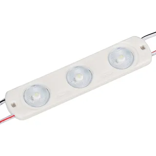 Герметичный светодиодный модуль IP65, ДНЕВНОЙ 4000 К, напряжение 12 В, мощность 1.2 Вт, св. поток 120 лм, 3 светодиода SMD 2835, угол 170°. 20 шт на проводе, расстояние между центрами модулей 180 мм, длина провода между модулями 105 мм, рекомендуемая глубина установки 60–150 мм. Размер 80x17.5x6.2 мм. Гарантия 5 лет. Высокая световая эффективность.