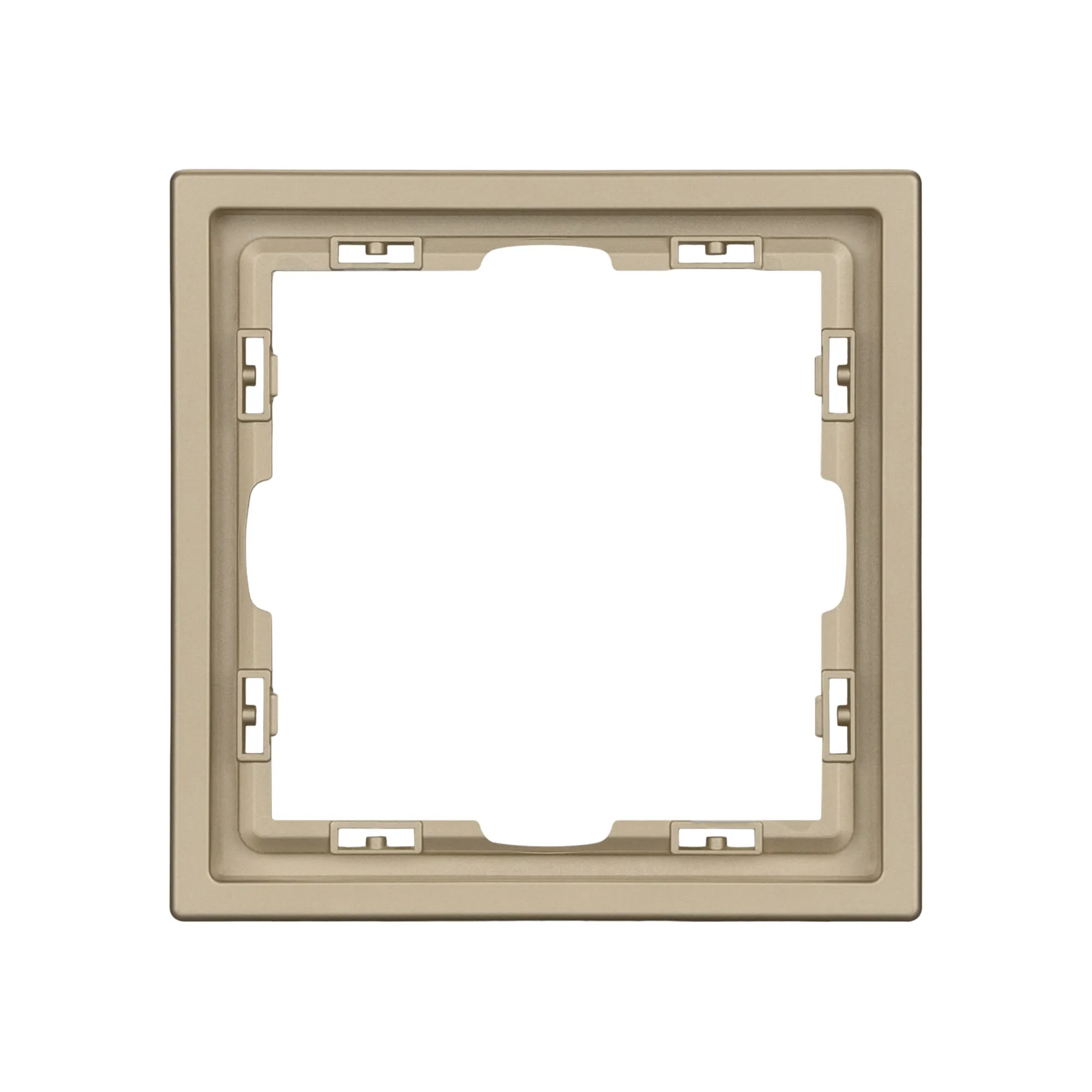 Рамка пластиковая на 1 пост, под встраиваемый механизм. Цвет - золотой песок, с Soft-Touch покрытием. Среднего уровня герметичности IP20. Ориентация монтажа горизонтальная.