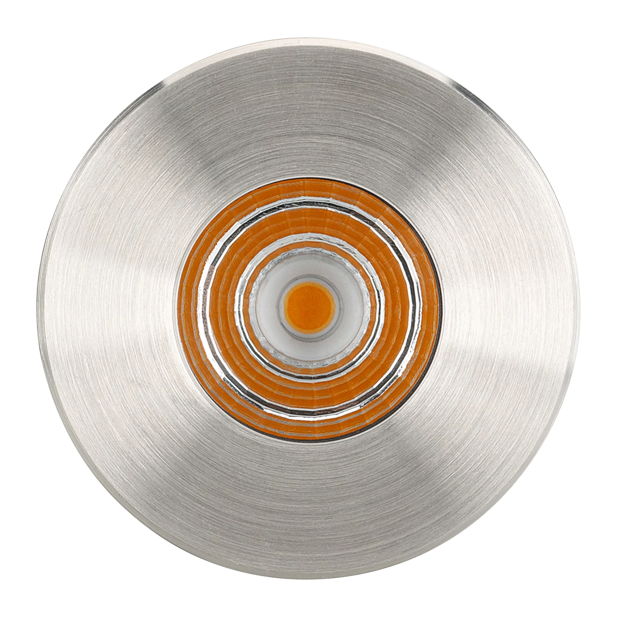 Встраиваемый светодиодный светильник для грунта и пола. Мощность 6Вт, световой поток 327лм, цвет ТЕПЛЫЙ 2700К. CRI(Ra)>80, угол 24°. Круглый влагозащищенный корпус IP67, нержавеющая сталь. Экран закалённое стекло. Питание AC100-245V, 6Вт. Размер DxH Ø65x80мм. Установка в отверстие DxH Ø53x110мм.