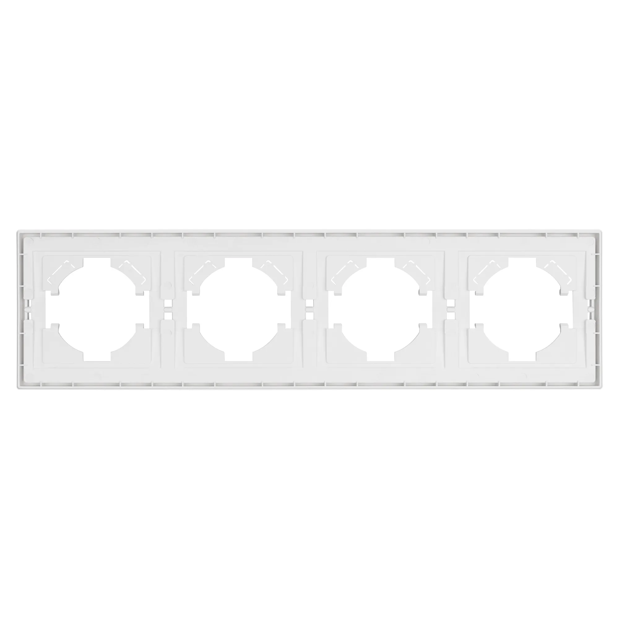 Рамка пластиковая на 4 поста, под встраиваемый механизм. Цвет - белый. Уровень герметичности IP20. Ориентация монтажа горизонтальная.