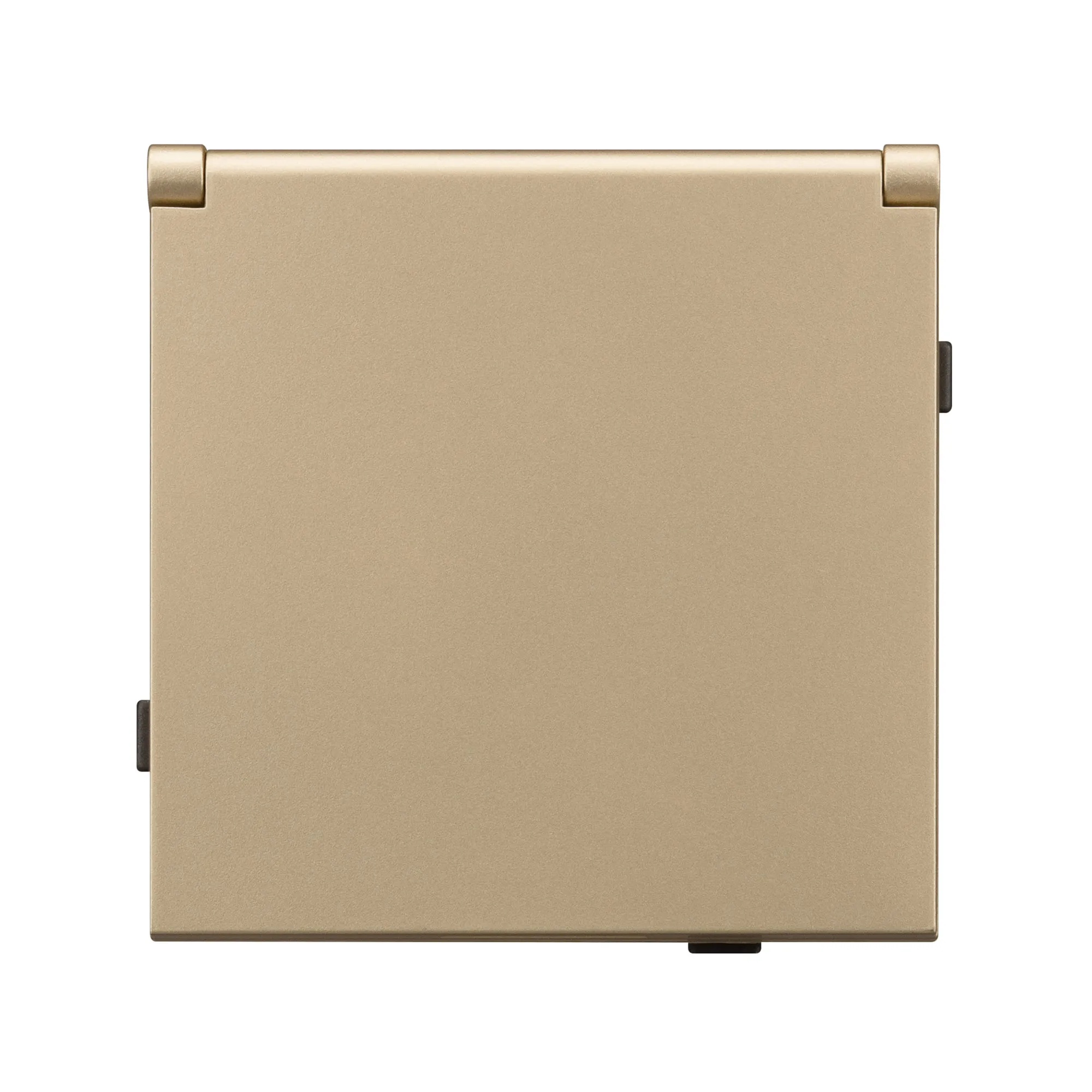 Механизм розетки с заземлением и влагозащитной крышкой на 1 пост. Цвет - матовый песочный, с Soft-Touch покрытием. Без фронтальной рамки. Уровень пылевлагозащиты IP44. Розетка устанавливается в стандартный подрозетник круглого сечения диаметром 60мм.