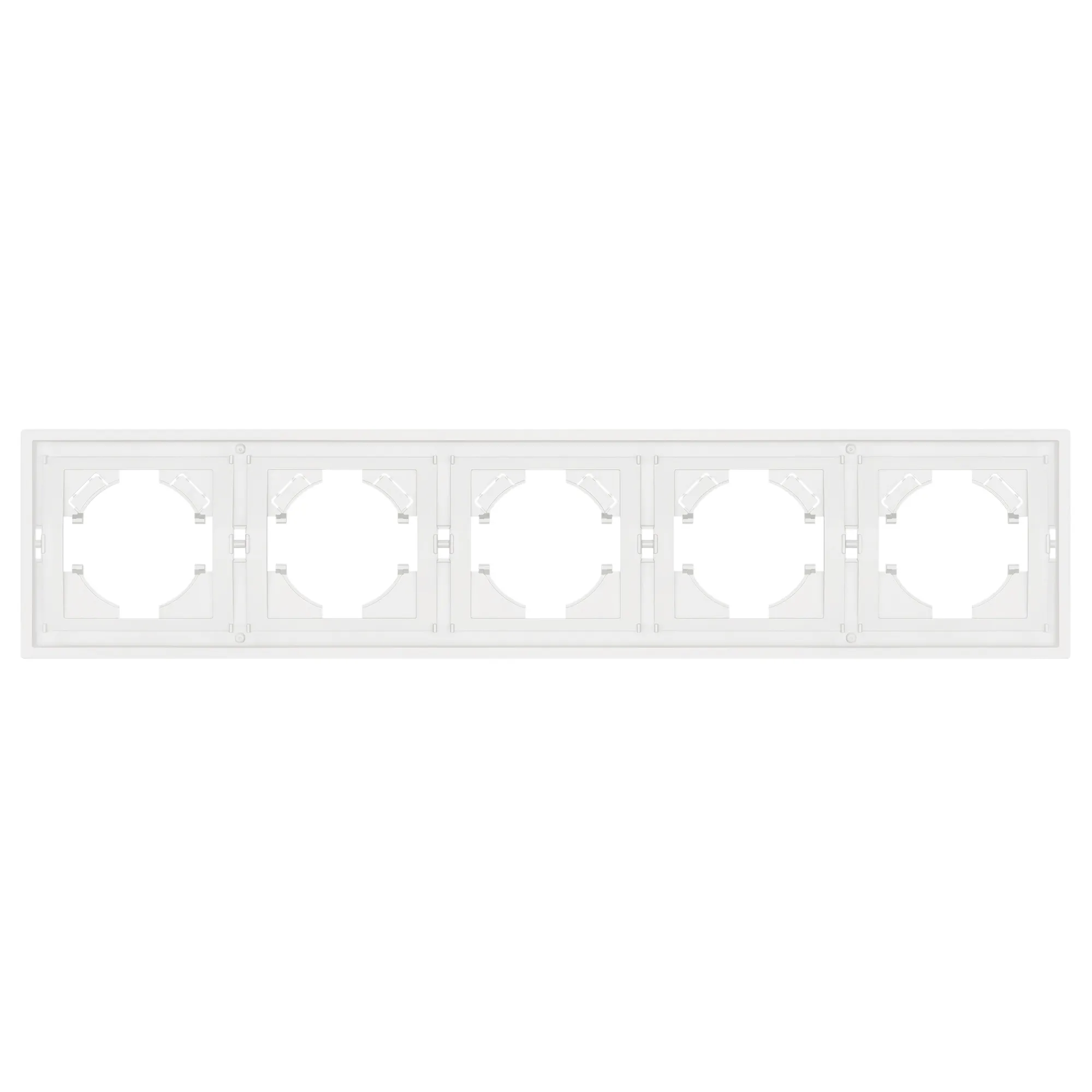 Рамка пластиковая на 5 постов, под встраиваемый механизм. Цвет - матовый белый, с Soft-Touch покрытием. Уровень герметичности IP20. Ориентация монтажа горизонтальная.