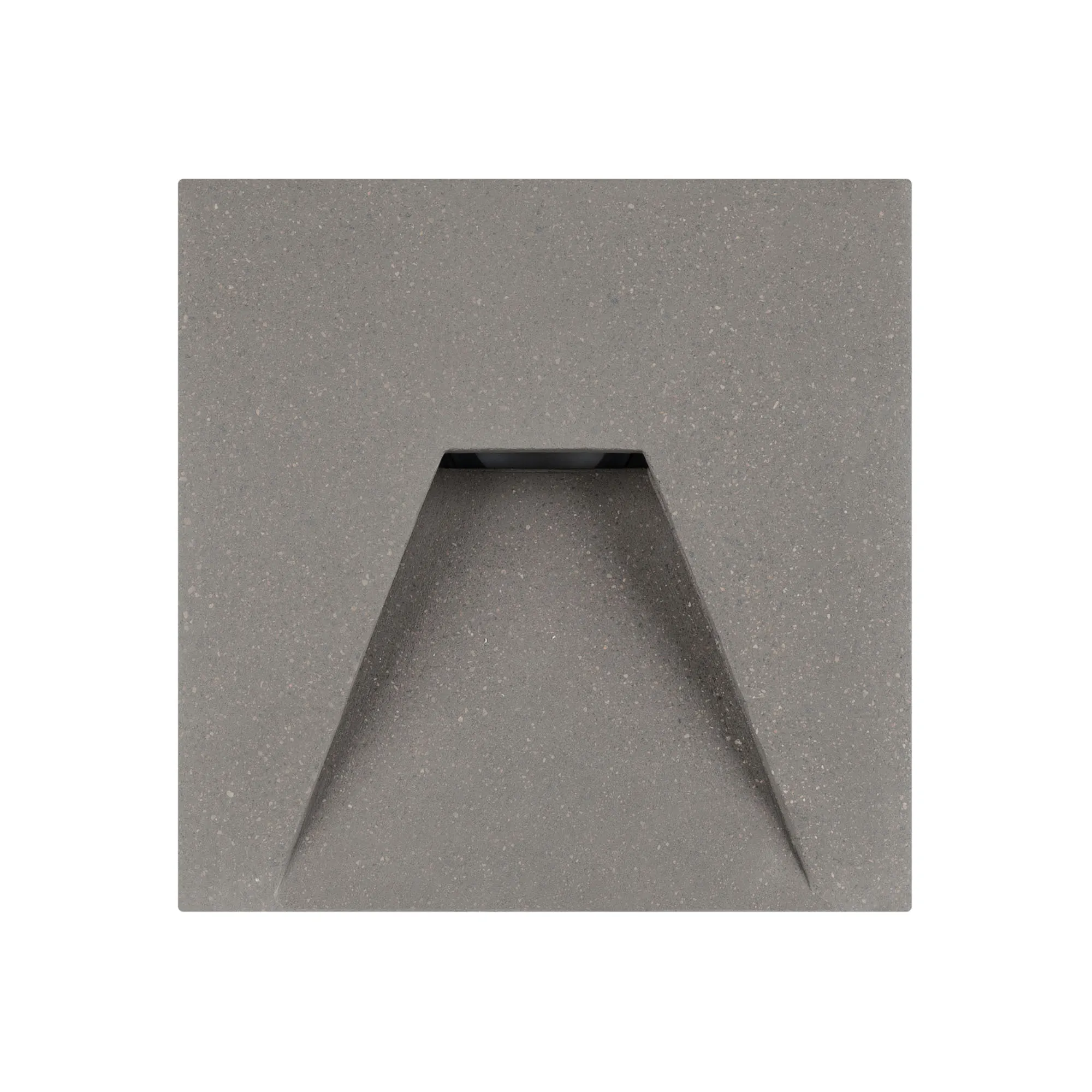 Светодиодный встраиваемый квадратный светильник для стен, лестниц. Мощность 3Вт, световой поток 80 лм, теплый 3000К, угол 75x30°, CRI>80, напряжение 230 В. Квадратный корпус из бетона серого цвета и алюминия. Степень защиты IP65. Питание AC230V, мощность 3Вт. Размеры LхWхH 100х100x76 мм. Драйвер встроенный, пульсация <0.5%.