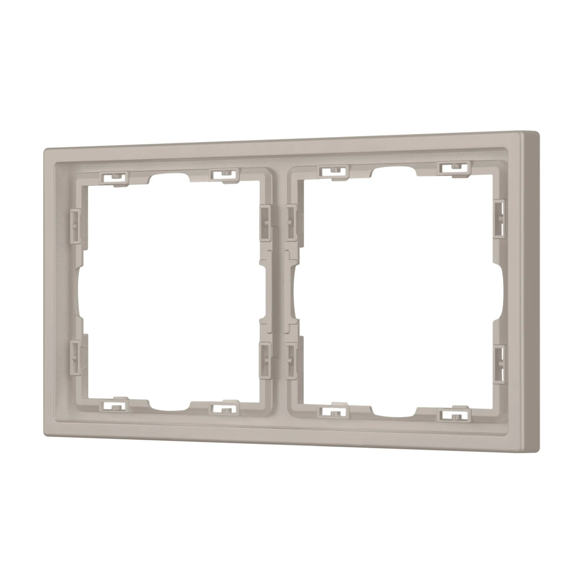 Рамка пластиковая на 2 поста, под встраиваемый механизм. Цвет - кашемир, с Soft-Touch поверхностью. Среднего уровня герметичности IP20. Ориентация монтажа горизонтальная.