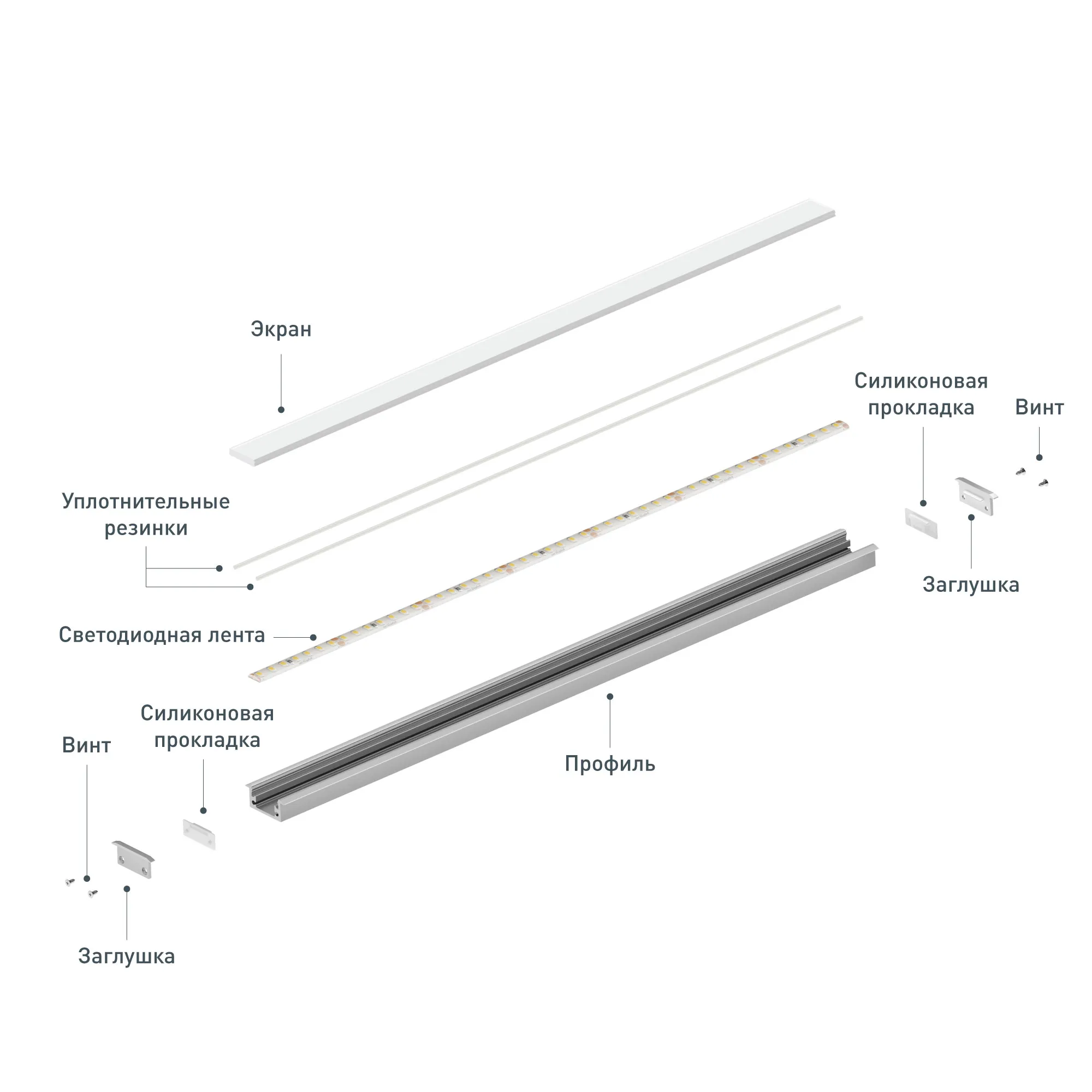 Алюминиевый анодированный профиль с фланцем. Возможность герметизации до IP65 (при использовании силиконового клея для фиксации экрана и заглушек), IK10 (08-10). Габаритные размеры (L×W×H): 2000x26,8x11 мм. Ширина площадки для ленты 12,2 мм. Заглушки и другие аксессуары приобретаются отдельно. Цена за 1 метр.
