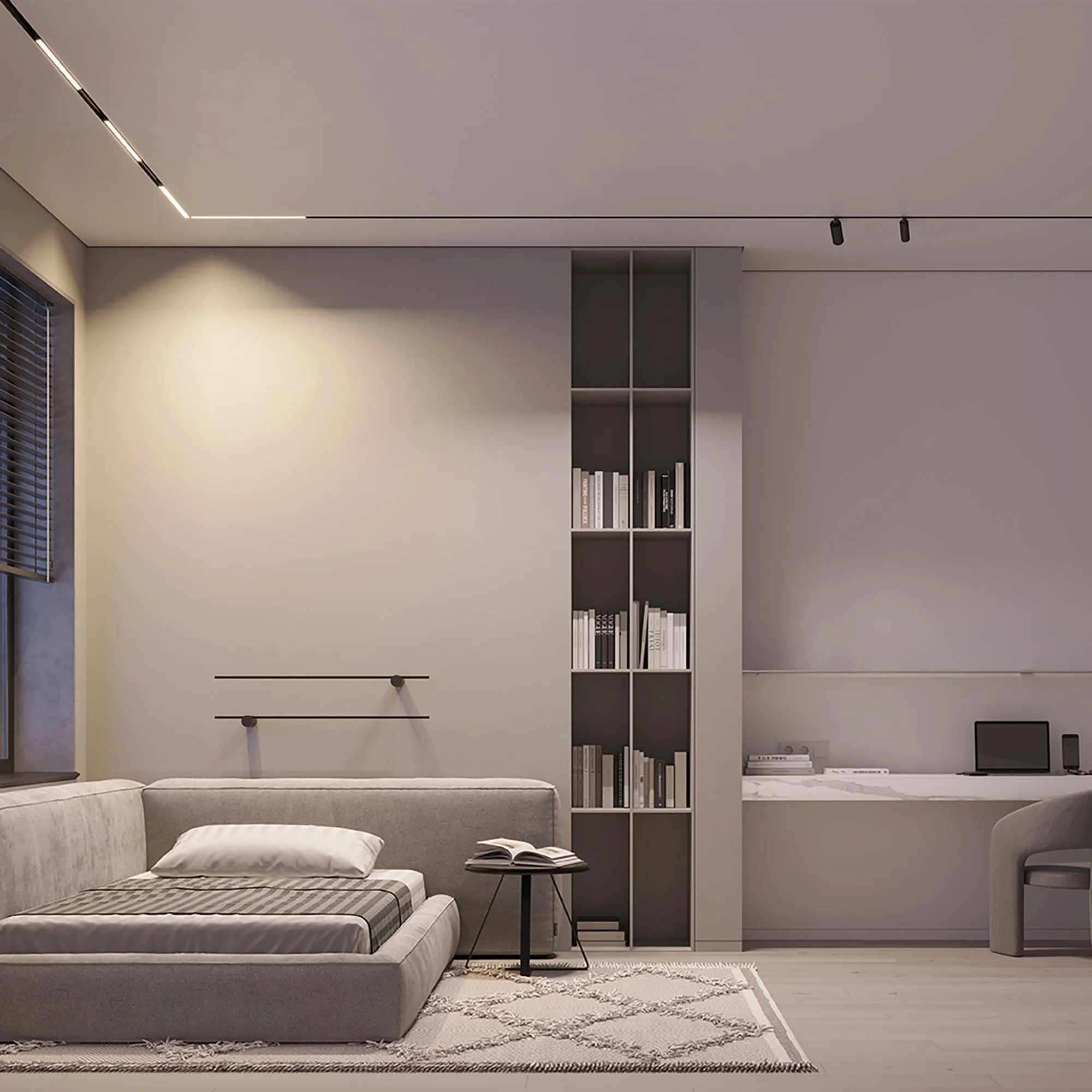 Светильник для магнитных треков MAG-ORIENT шириной 26 мм с управлением TUYA Zigbee и изменяемой цветовой температурой. Мощность 16 Вт, св. поток 1170-1290 лм, 73-80 лм/Вт, изменяемая цветовая температура 2700-6500 K, CRI>92, угол 80°, напряжение питания 48 В. Черный прямоугольный корпус из металл, экран поликарбонат, степень защиты IP20. Размер: длина 465 мм, ширина 22 мм, высота 42 мм. Монтаж на трек MAG-ORIENT. Пульсация <1%. Работает с голосовыми помощниками (Алиса, Маруся и т.д.)