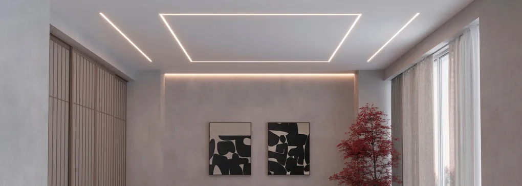 С профилями STRETCH 20 вы можете не только создать аккуратный и эстетичный потолок, но и достаточное освещение. В зависимости от используемого источника света профили подойдут как для основного освещения, так и для декоративной контурной подсветки.