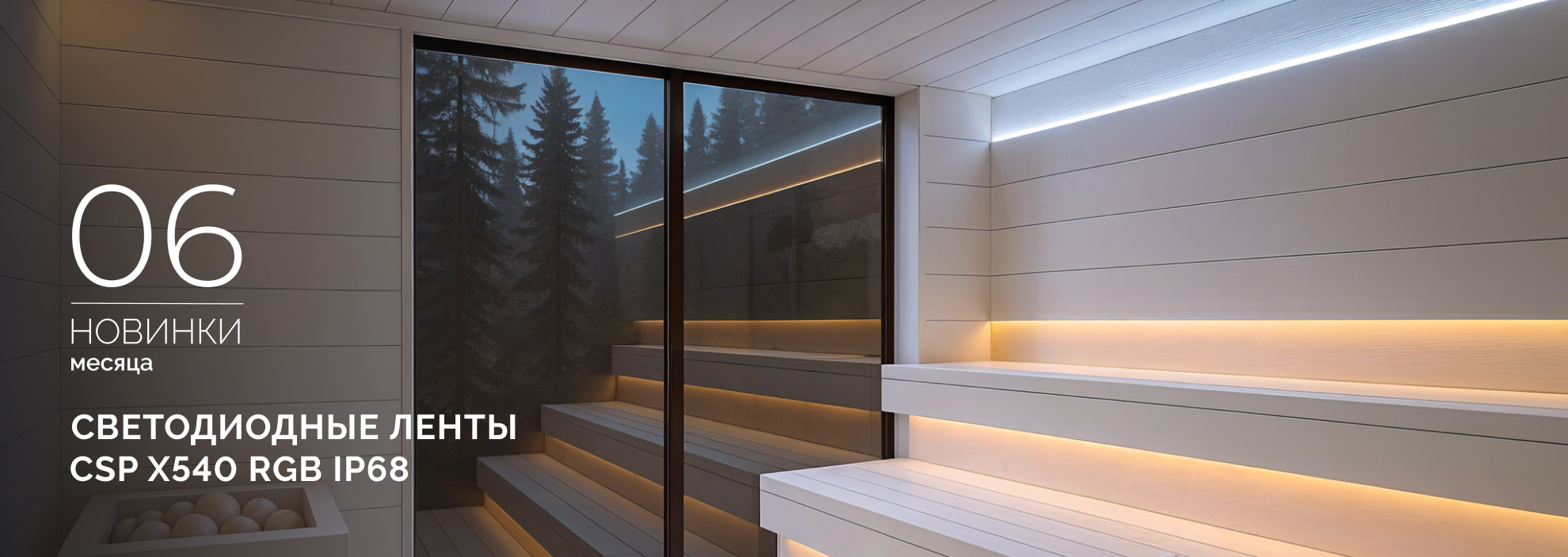 Светодиодная герметичная лента CSP серии X540 RGB (https://arlight.ru/catalog/product/051234/?from=search) со степенью защиты IP68 — это прекрасное решение для подсветки саун, бань, бассейнов, фонтанов и искусственных водоемов (без примесей агрессивных веществ: кислот, щелочей и пр.) на глубине до 2 м.